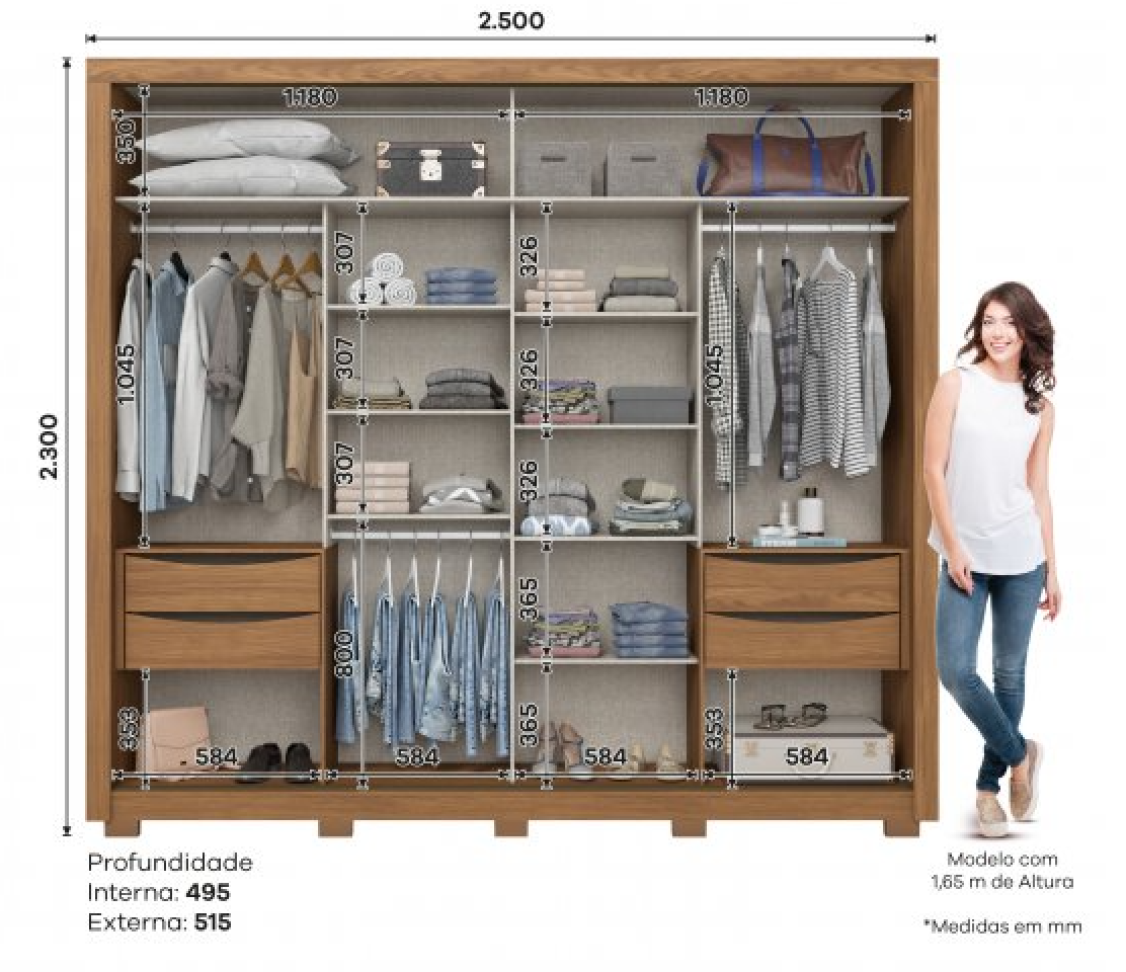ROUPEIRO 2 PORTAS DESLIZANTES CINAMOMO/C...